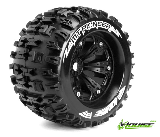 Louise MT-PIONEER Monster Truck-Reifen auf schwarzen 3,8-Zoll-Rädern mit 0-Offset