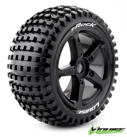 Louise T-ROCK 1/8 Truggy Tires on Black 5-Spoke Wheels