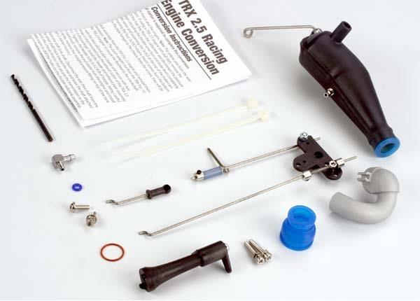 Traxxas makes it easy to upgrade TRX Pro .15 nitro-powered T-Maxx models to the awesome power of the TRX 2.5 or 3.3 racing engines. All the necessary hardware is included such as: header, pipe, pipe hanger, coupler, linkage, and additional components specific to each model. Major components come pre-assembled and pre-adjusted from the factory. Detailed instructions are included.