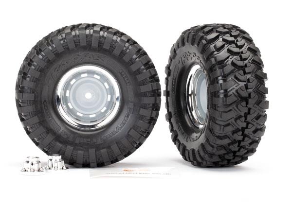 Tires and wheels, assembled, glued (1.9' chrome wheels, Canyon Trail 1.9 tires) (2)/ center caps (2)/ decal sheet (requires #8255A extended stub axle)